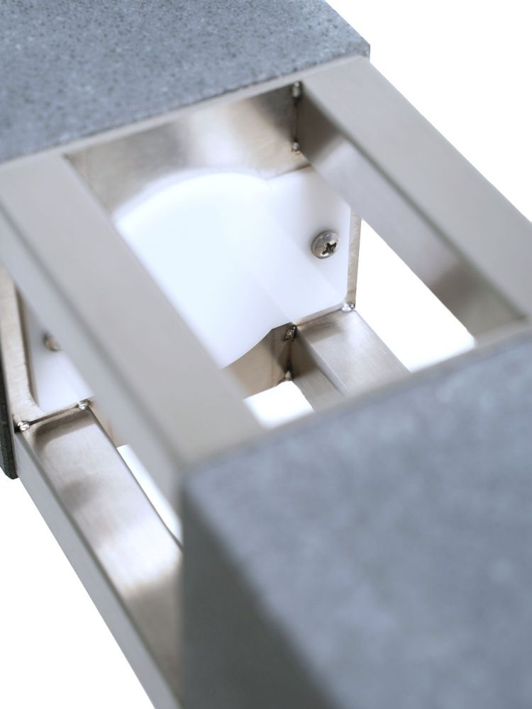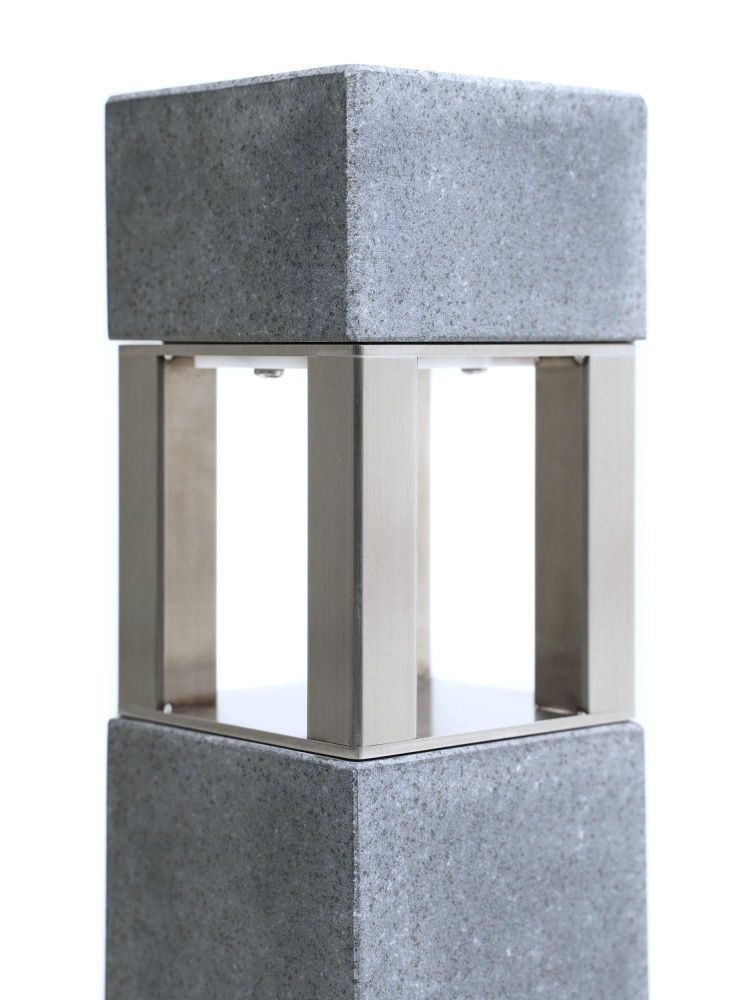Классический светильник серии Сампо сочетает в себе гранит габбро-диабаз и нержавеющую сталь, создавая прочный и стильный элемент декора. Матовая поверхность добавляет изысканности.