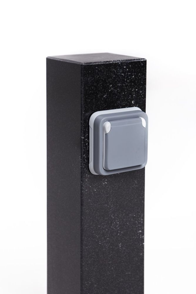 Современная садово-парковая розетка из гранита габбро-диабаз с гладкой полированной поверхностью. Идеально подходит для современного уличного интерьера.