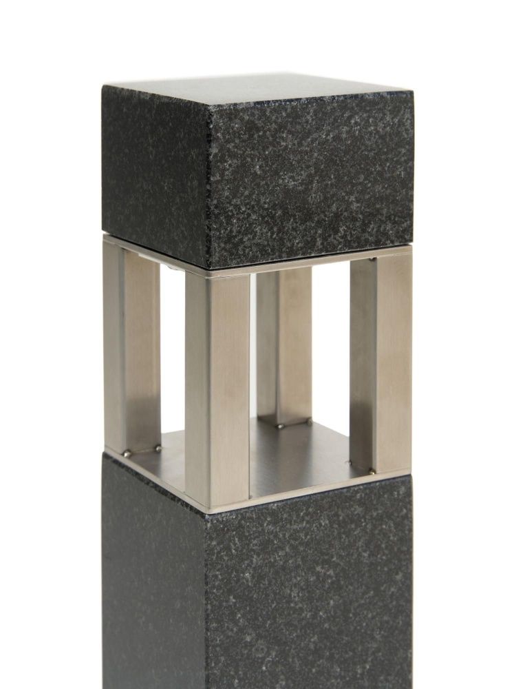 Современный светильник Сампо сочетает в себе гранит габбро-диабаз и нержавеющую сталь с полированной поверхностью. Этот стильный светильник станет отличным дополнением к любому современному ландшафту.